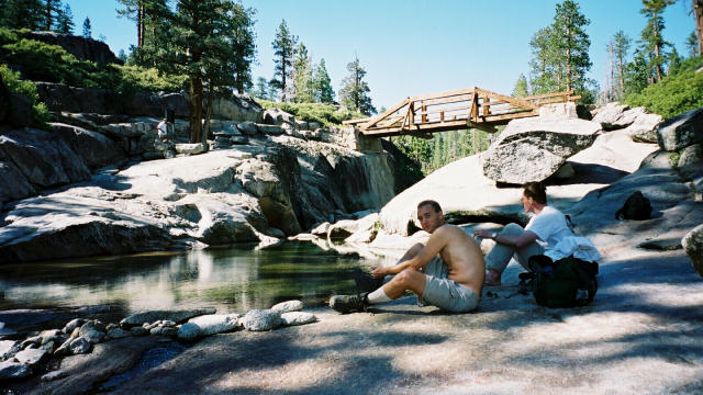 En tout cas les petites baignades en haut de Yosemite falls ne furent pas pour nous déplaire. Monter la tente dans le noir alors qu'on ne l'avait jamais monté avant aussi fut quelque chose d'assez intéressant ...