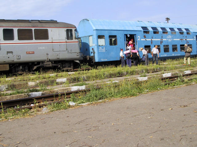 Petit à petit les arbres réapparaissent, puis les chemins forestiers, les randonneurs du dimanche, les sentiers de sable, les voitures, les charrettes (ou carrosses comme dirait Ana. 10 Euros pour 4 kms en charrette, y'a un mec qu'a essayé de se foutre de nous), puis la ville, la station de bus (no comment sur la station de bus mais maintenant je sais dire la ferme en roumain ;) ... ), la gare, le train, Bucarest, une bonne douche chaude bien méritée...